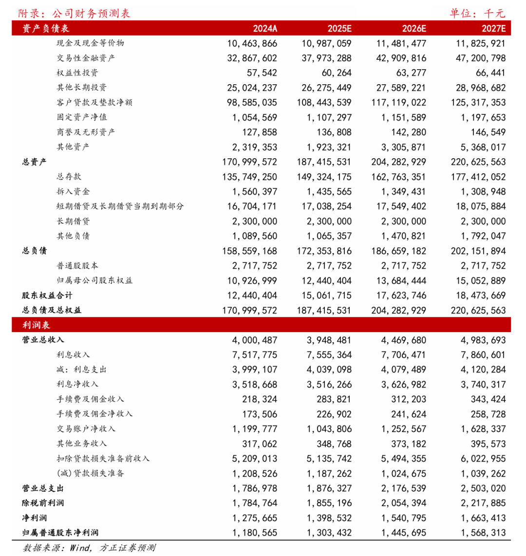 投资建议:维持公司“推荐”评级。公司净利润维持高速增长,借助区位优势深耕主业,资产规模稳健扩张,负债结构持续优化,公司净息差维持较高水平;公司经营指标向好,资产质量改善。预计25-27年归母净利润13.99亿元、15.41亿元、16.63亿元,同比增速分别+9.63%、+10.17%、+7.96%;25-27年营业收入分别为47.01亿元、51.38亿元、55.37亿元,同比增速分别为-9.76%、+9.30%、+7.78%;现收盘价(截至9/16)对应25E-27E动态P/B分别为0.51倍、0.47倍、0.42倍。